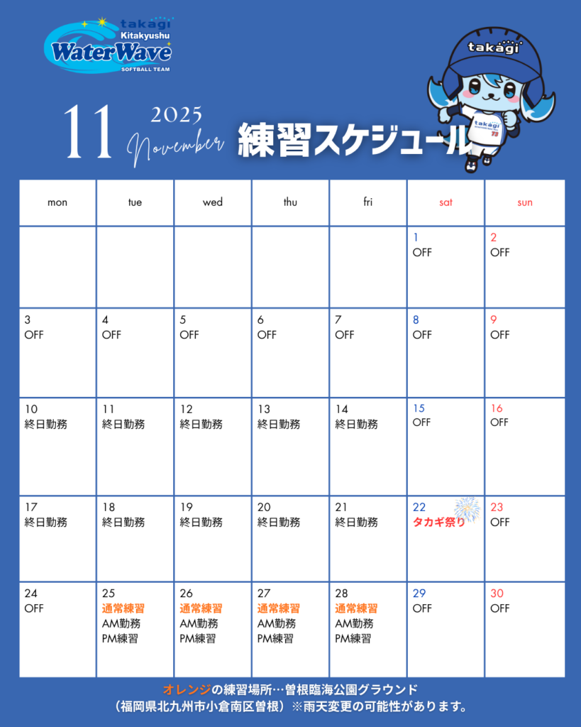 通常練習は曽根臨海公園グラウンド(福岡県北九州市小倉南区曽根)にて行っています。一般の方も見学可能です。
